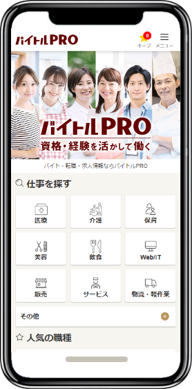 バイトルPROなら身に付けた資格や職務経験を、マイページでプロフィール登録が可能です。 -